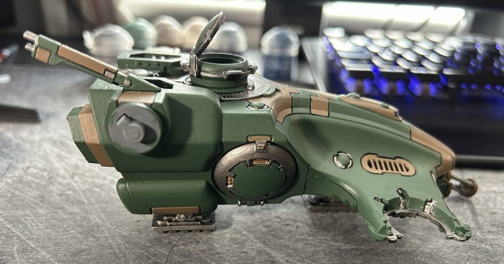The two remaining gun turrets didn’t take long to paint, following the same colour layout as the infantry drones. Keeping the sections uniform helped maintain a cohesive look across the model. With them finished, I assembled everything and took a moment to step back and look over the final piece. I was happy with the result, it felt like a solid effort for my first vehicle.
